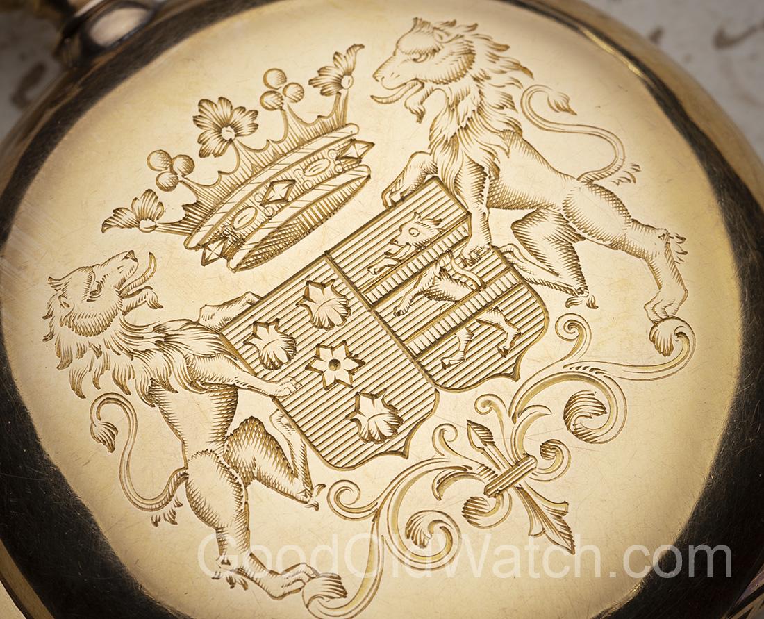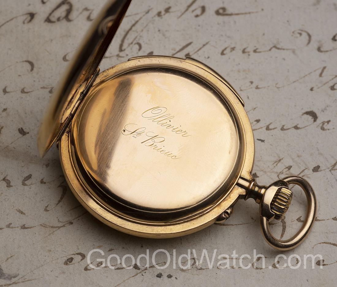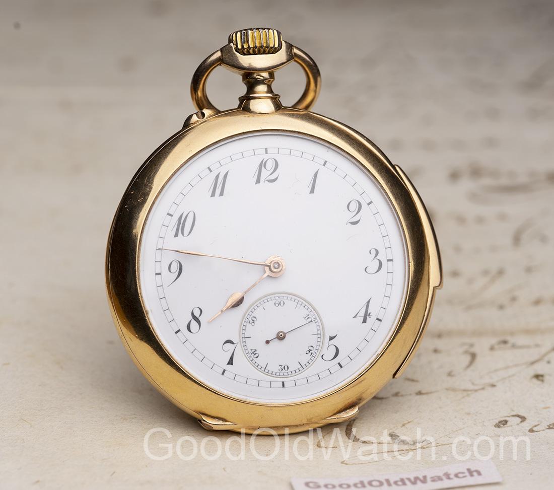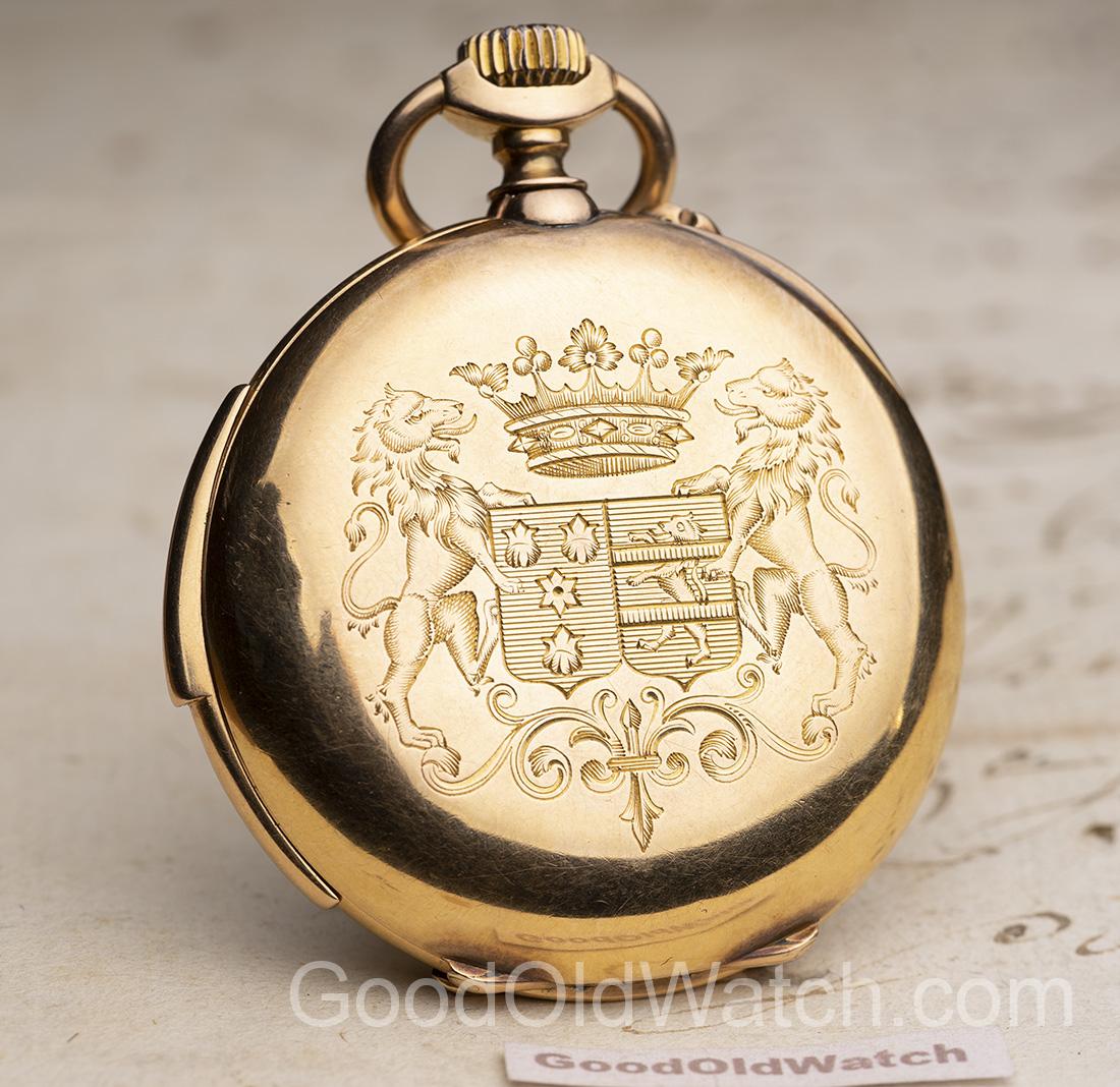 Elegant quarter repeater in solid 18k gold case.