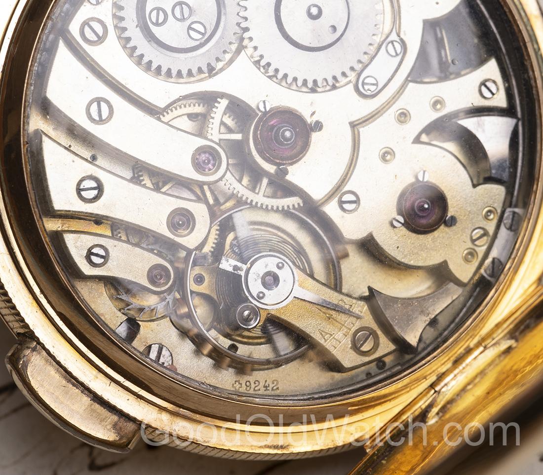 Watch is equipped with quarter repeating movement, made according patent 9242, obtained in 1894 by to