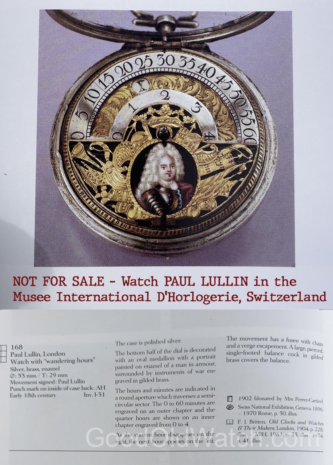 O. Patrizzi in "Dictionnaire des horlgers Genevois" records Paul Lullin - Master watchmaker of very high reputation, first tier of XVIII.