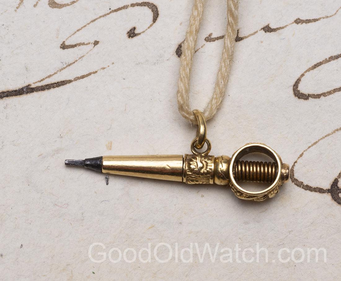 Gilt brass barrel with "arbre percé" (square opening for winding), for inverted Breguet key.