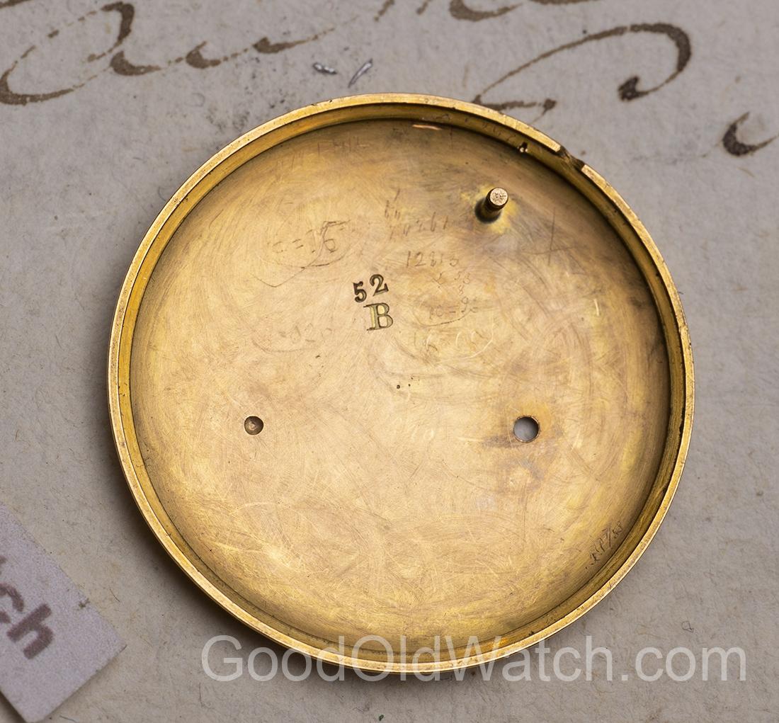 Back cover is hallmarked with B 52, case equally bears French hallmarks for 18k gold.