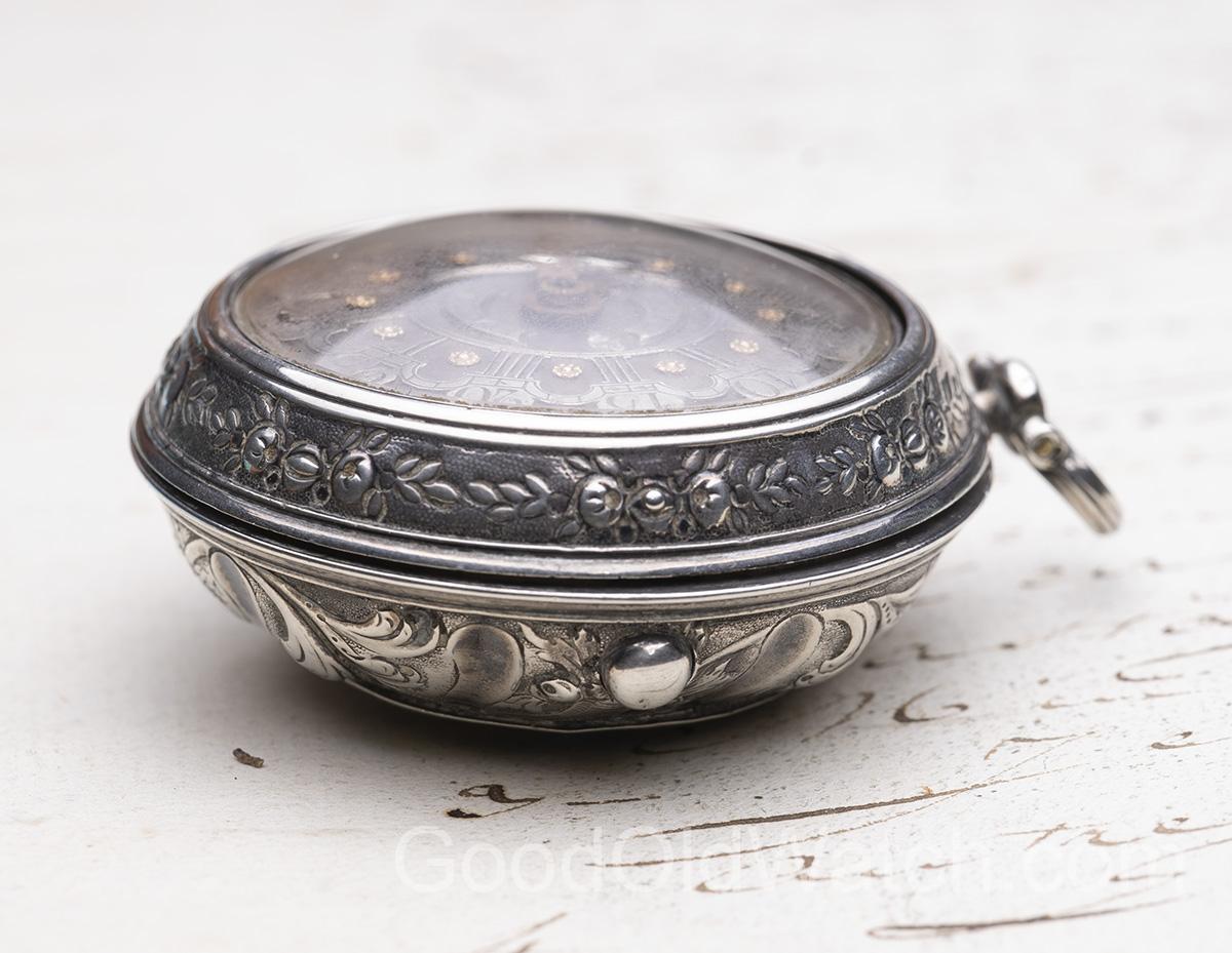 Regarding the movement size and thickness, the cock design and square baluster pillars style, I would date the watch to 1770-1780s approximately.