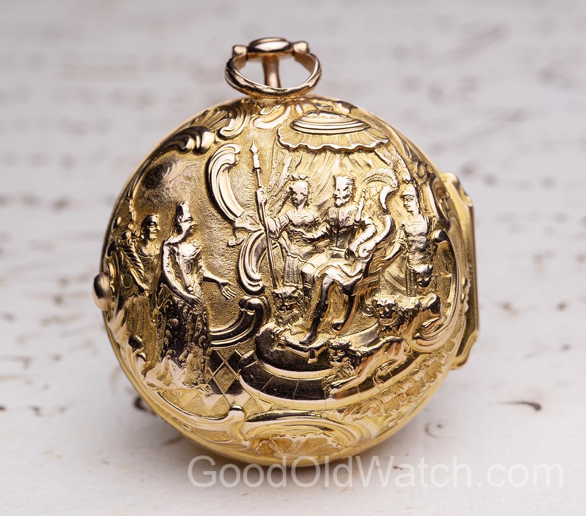 Outer repousse case depicting scene of